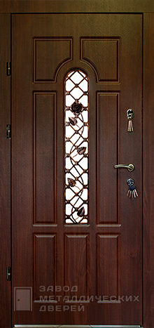 Металлическая дверь для загородного дома с отделкой темный дуб №10 — вариант для коттеджа, когда хочется и солидности, и света в прихожей. Накладки МДФ с обеих сторон дают ровную «дубовую» фактуру, не капризничают в уходе и хорошо держат внешний вид. Акцент в дизайне — стеклопакет с кованой решёткой: выглядит статусно, а дом остаётся под контролем. Основа выполнена из профильной трубы 50×25 мм и холоднокатаной стали 2 мм, с двумя рёбрами жёсткости 40×25 мм и противосъёмными блокираторами 10 мм. Два контура уплотнения с резинкой E+D убирают сквозняки и хлопки, а утепление можно добавить минватой или пенопластом. Размер изготовим под ваш проём. Металлическая дверь для загородного дома с отделкой темный дуб №10 по выгодной цене с доставкой и установкой в от производителя.